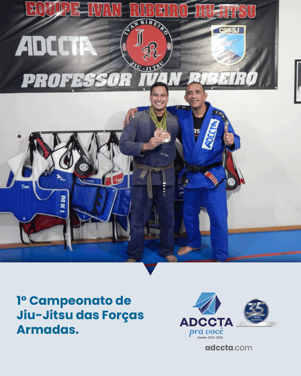 O Atleta Faixa Preta PAULO Roberto Carvalho MANSO de Souza Júnior, 2º Sgt que trabalha no IAE, 1º Secretário da ADCCTA, ficou em 3º lugar em sua categoria. E o Atleta Faixa Marrom JANSEN Ferreira Ferraro, 2º Sgt que trabalha no CCA-SJ e treina com o Prof. Ivan Ribeiro na Academia Ivan Ribeiro Jiu-Jitsu, sócio da ADCCTA, ficou em 3º lugar em sua categoria e no absoluto, conseguindo duas medalhas na competição.
