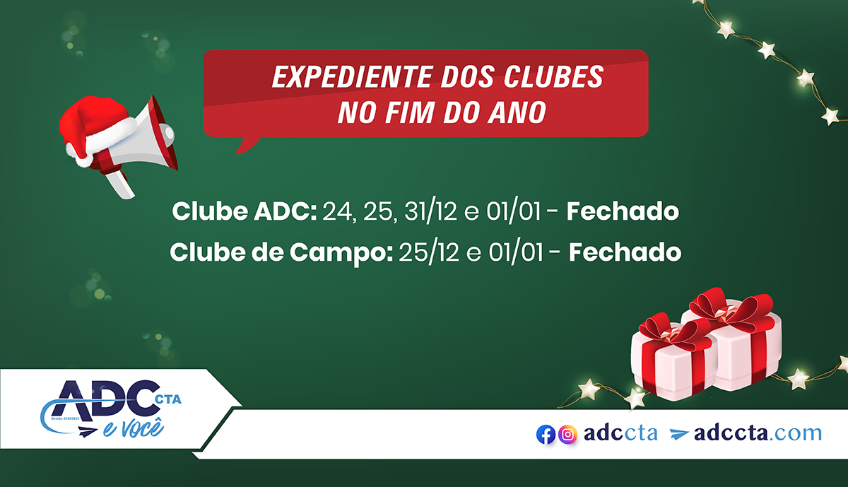 Clube ADC: 24, 25, 31/12 e 01/01 – Fechado